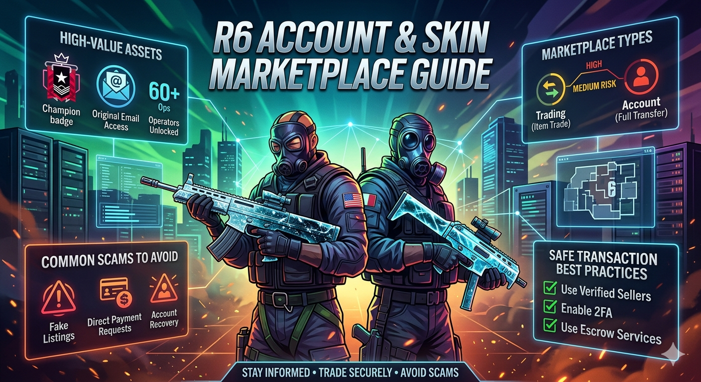The R6 marketplace refers to platforms where players buy, sell, or trade Rainbow Six Siege accounts, skins, operators, and other in‑game items. These marketplaces can include third‑party trading platforms, account-selling services, and community trading hubs.
